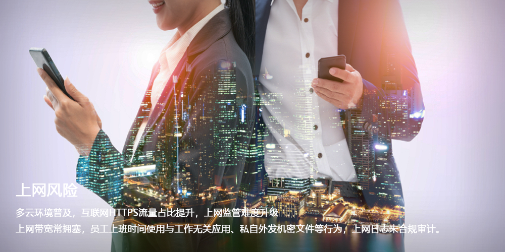深信服全网行为管理支持全网终端、应用、数据和流量的可视可控,智能感知终端违规接入、上网违规行为、敏感数据泄密等内部风险, 实现终端准入管控、上网管控和数据泄密管控的一体化行为安全管控。